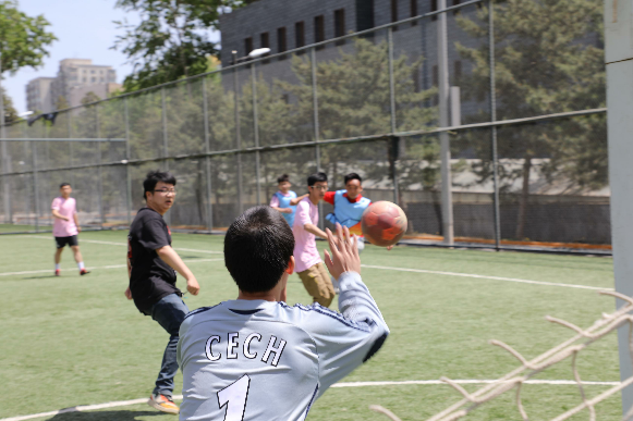 首场比赛的两支队伍分别是教博联队和硕士生队。随着裁判张嘉晨的一声哨响,比赛正式开始。炎热的天气挡不住大家的比赛热情,队员们很快便进入状态,你拼我抢,积极跑动。开场5分钟,倪天佳老师灵活盘带,晃开最后一名防守队员后起脚打门,足球入网,一气呵成。随后教博联队借势继续进攻,朱晓宝老师接边路传中,一脚爆射直挂球门死角。易边再战,硕士生队迅速调整了战术,积极地拼抢和快速地跑动,打出了一波猛烈的反击,硕士生队郭英栋接队友传球,边路切中,一脚漂亮的挑射进球。硕士生队继续保持进攻热度,有两次打到球门柱上,还有几次极具威胁的进攻,场上气氛一度十分激烈,精彩不断。最终比赛以5:2结束,教博联队获胜。
