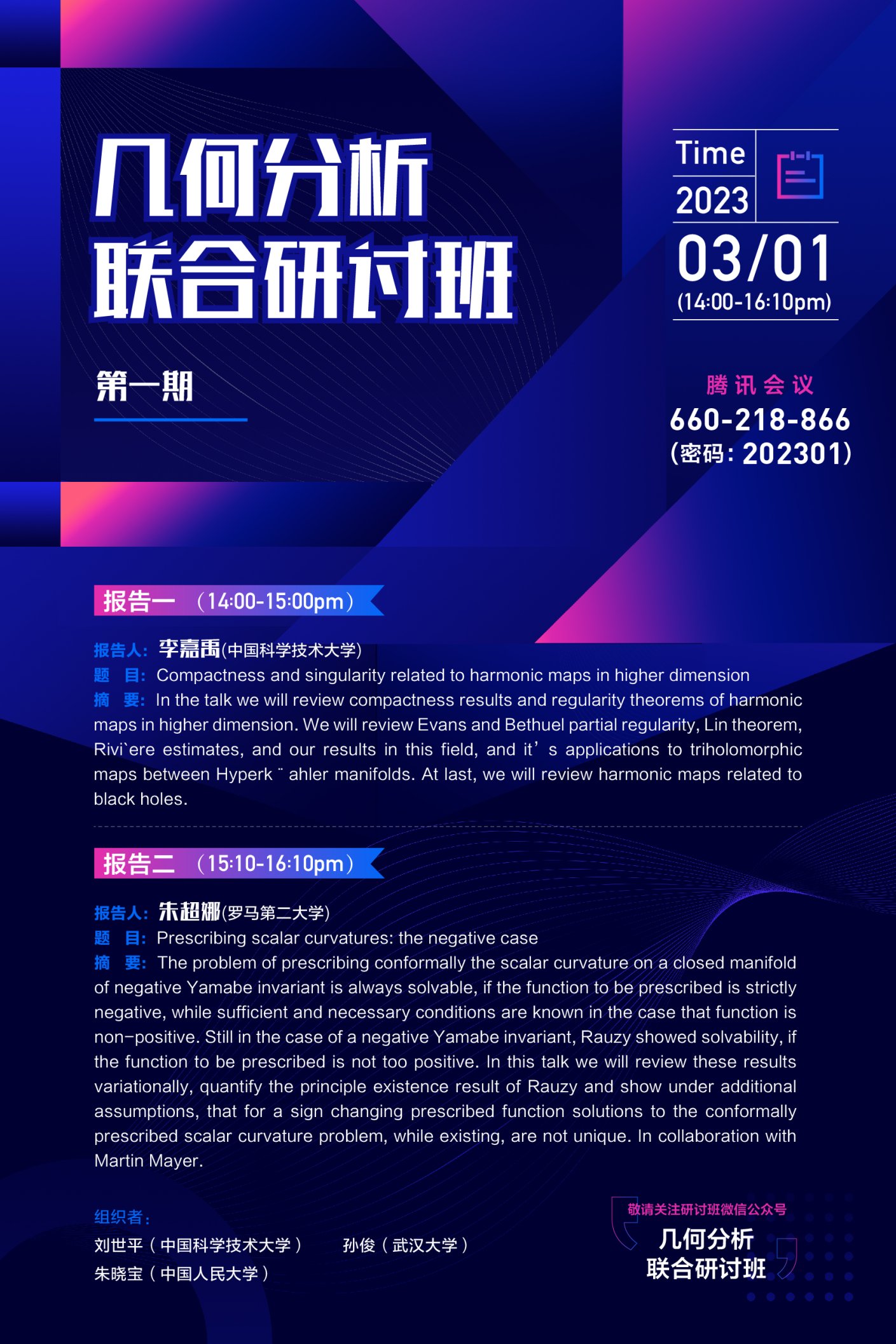本次几何分析联合研讨班由pg电子试玩平台 朱晓宝老师、中国科学技术大学刘世平老师和武汉大学孙俊老师联合组织,欢迎感兴趣的老师和同学前来聆听学习!