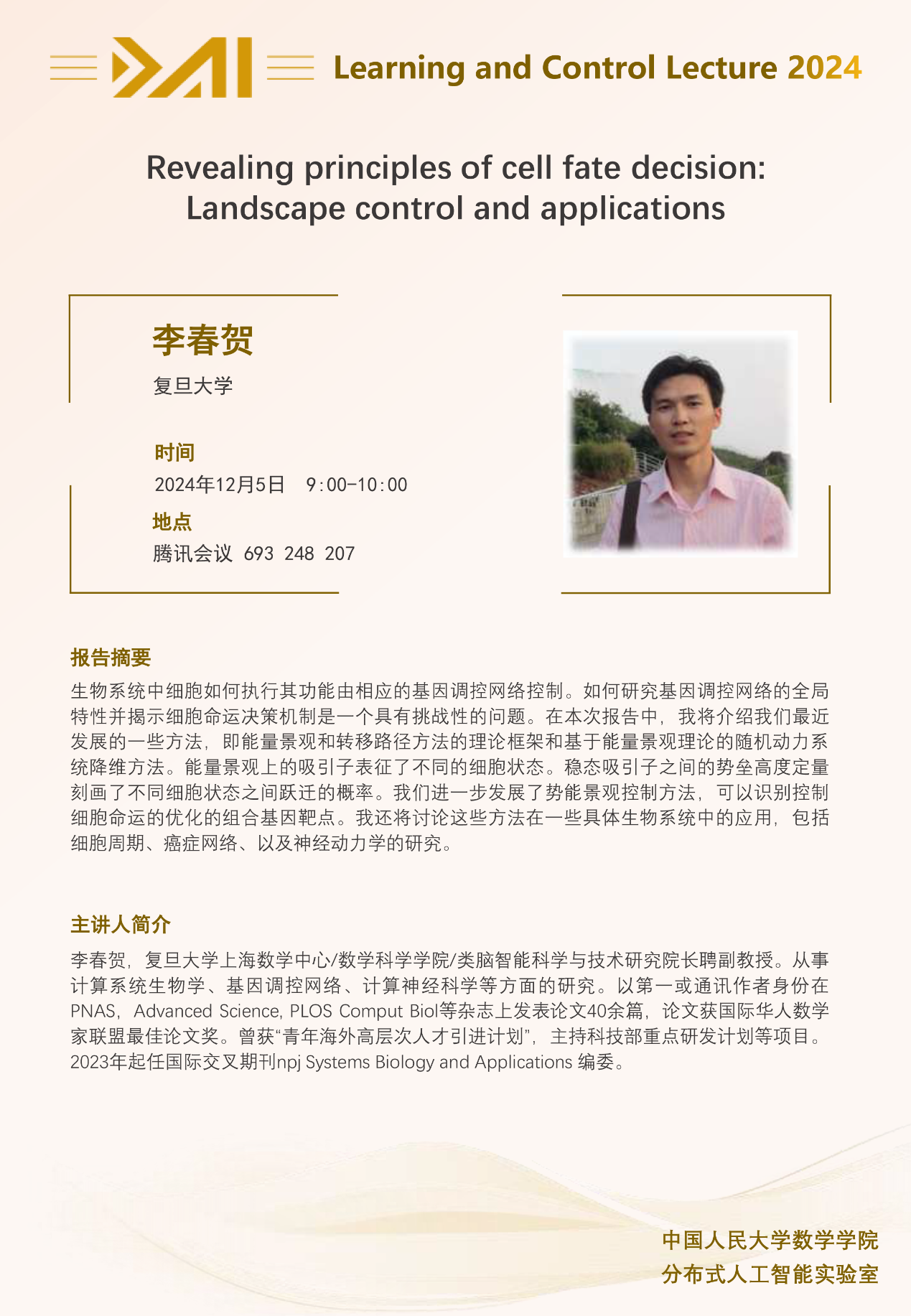 报告题目:Revealing principles of cell fate decision: Landscape control and applications