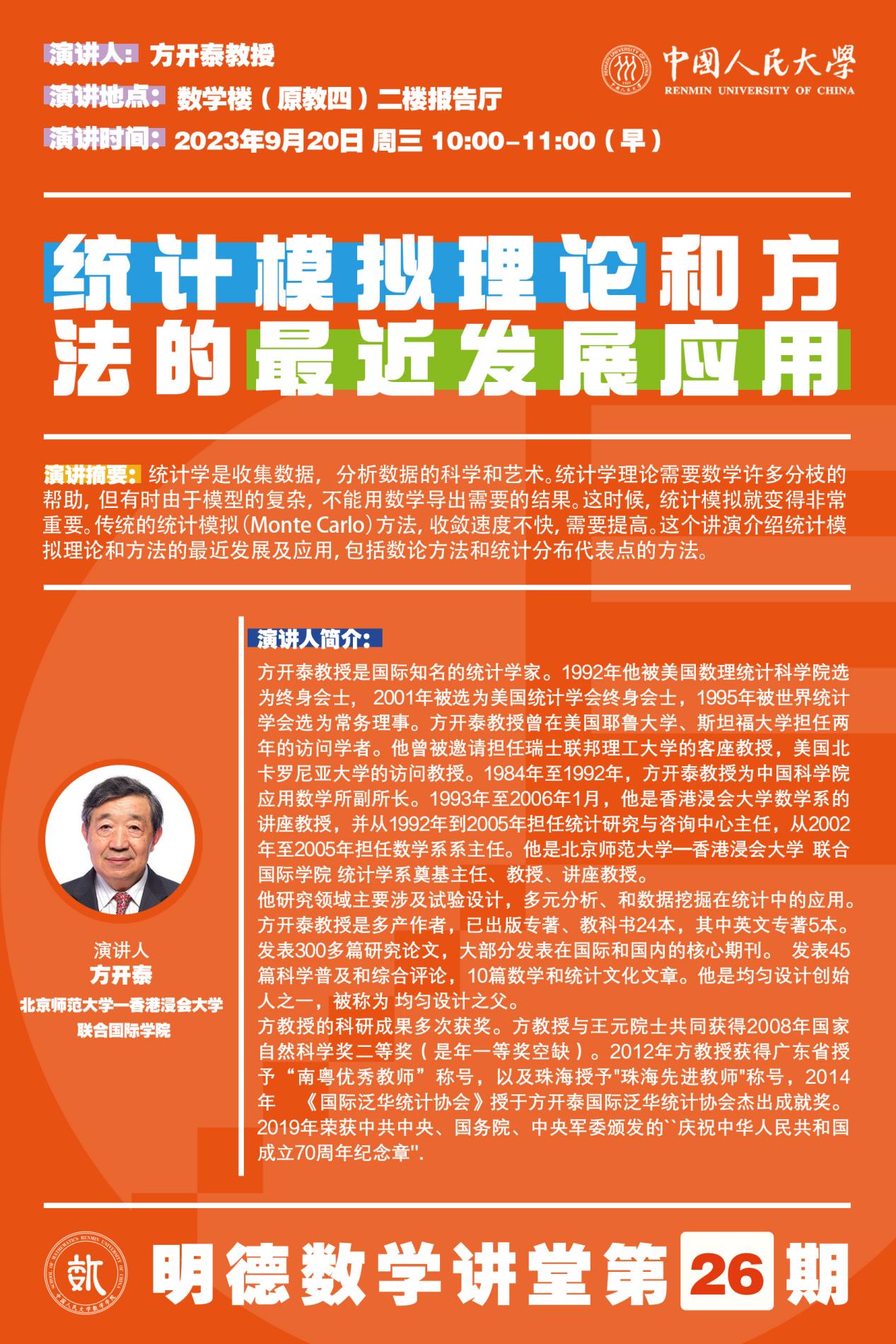 学术报告|统计模拟理论和方法的最近发展应用