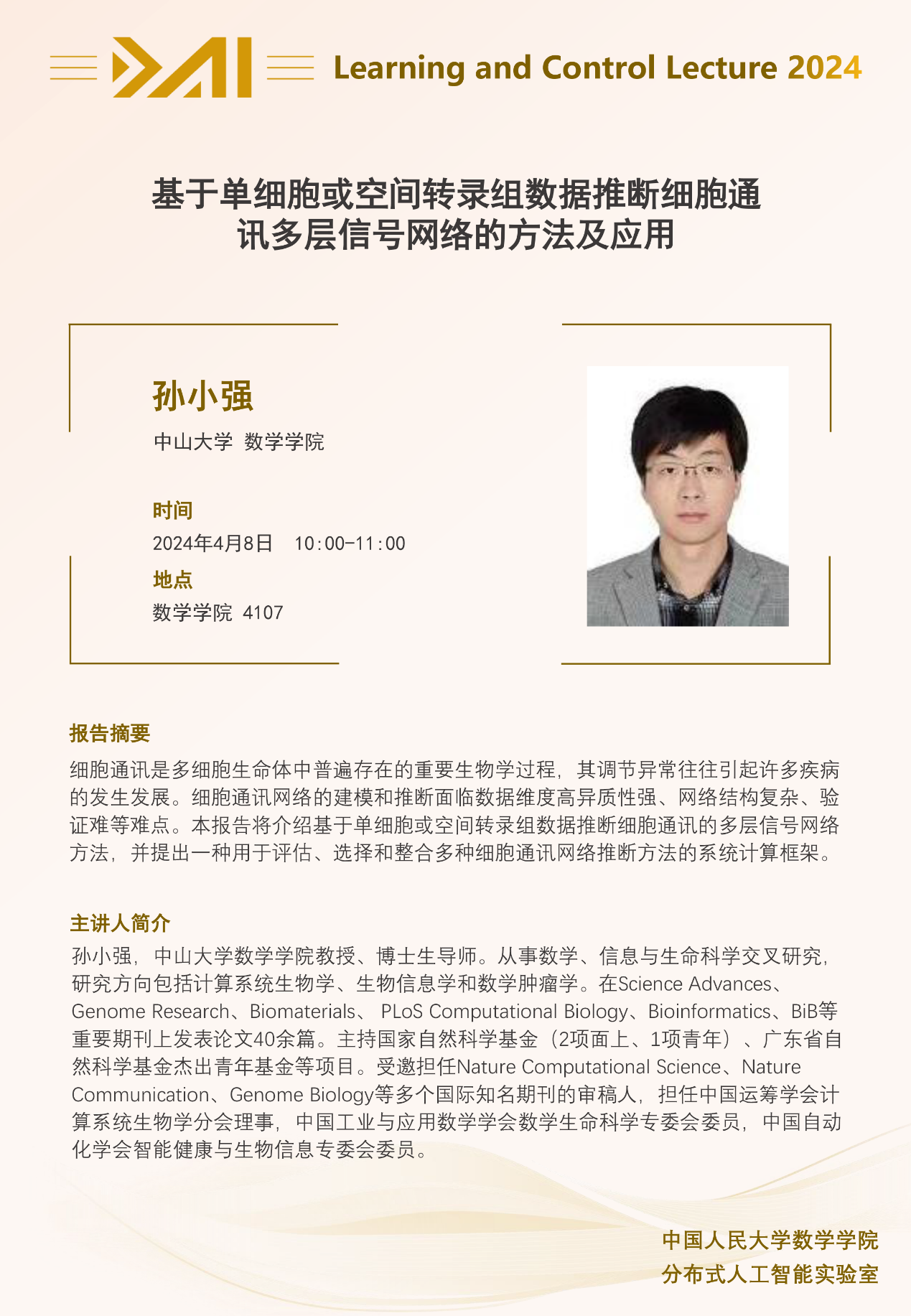 报告题目:基于单细胞或空间转录组数据推断细胞通讯多层信号网络的方法及应用
