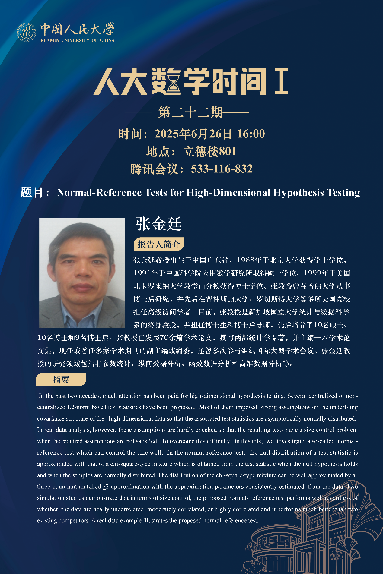 主讲专家:张金廷,新加坡国立大学统计与数据科学系终身教授