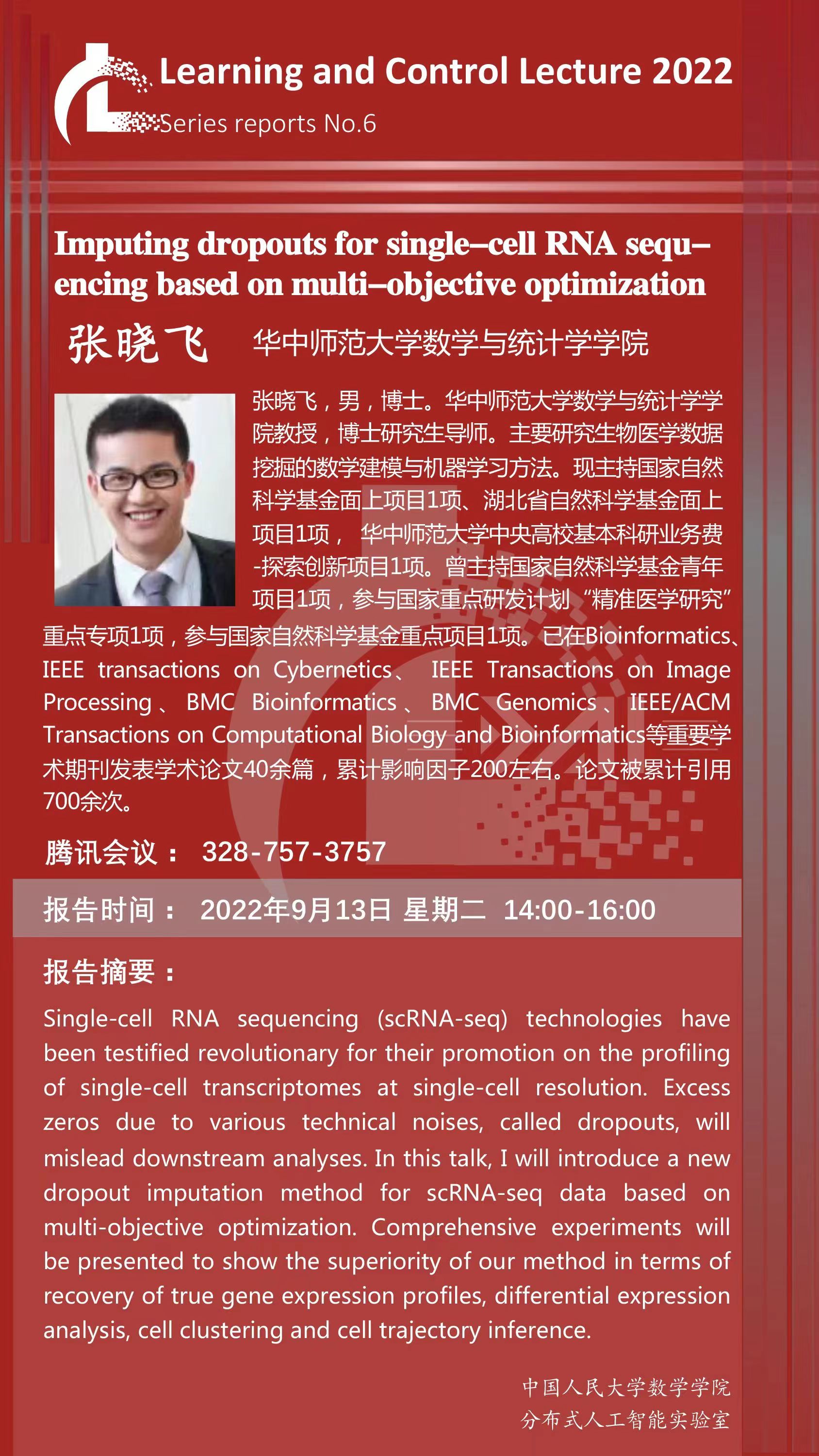 报告题目:Imputing dropouts for single-cell RNA sequencing based on multi-objective optimization