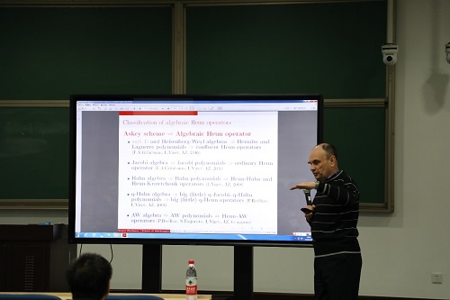 2019年3月29日下午,pg电子试玩平台 明德数学讲堂系列第九讲在国学馆114室举行。pg电子试玩平台 Oleksiy Zhedanov教授应邀作了题为“Algebraic Heun operator and its applications”的学术报告。pg试玩 部分教师和研究生以及其他院系的一些师生参加了报告会。