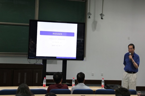 2019年5月31日下午,pg电子试玩平台 明德数学讲堂系列第十一讲在国学馆114室举行。北京大学文兰院士应邀做了题为“悖论与反证法”的数学报告。pg试玩 部分教师和研究生以及其他院系的一些师生参加了报告会。