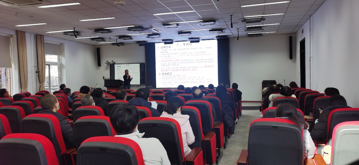 会上柯媛元教授传达了学校本科教学期末工作例会精神,从试卷准备工作到学生通知,从考试过程中的监考注意事项到试卷交接,从成绩管理到试卷提交,对期末考试方方面面进行了详细讲解说明。与会老师认真听取会议要求,并进行了热烈讨论,班主任老师们将召集各班学生开考务会,提醒每一位学生严格遵守考试纪律问题。