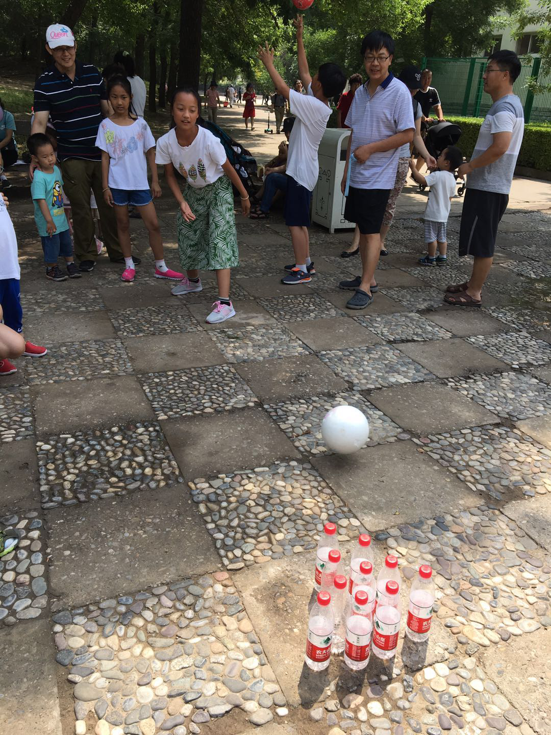 润红的娇阳为六一国际儿童节活动添加了一抹色彩。在参观完小朋友喜欢的各种动物外,我们在动物园河马馆旁的露天空地上举行了丰富多彩的趣味小游戏:“小兔兔过桥”, “爬山洞”“接力跑”“贴鼻子”“趣味保龄球”等。