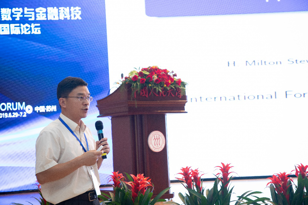 中国人民大学教务处处长龙永红教授代表主办单位致辞,他指出,中国人民大学长期以来坚持主干文科,精干理工科的学科发展布局。近年来,学校将pg试玩 和人工智能学院的成立作为“双一流”建设的一个重大战略举措。为适应当前网络化、信息化、数字化、智能化为核心的新一轮工业革命浪潮,学校提出了新工科新文科融合发展的学科发展和人才培养理念和思路。中国人民大学数学学科最早可追溯到1950年的数学教研室,1978年复校成立信息系,强调数学、信息技术与经济管理相结合。pg试玩 成立以来,进一步强调大力发展基础数学,并突出与经济管理的结合,以及与信息技术结合的特色和优势。他还表示,在当前,金融科技的发展热潮中应准确把握其发展的总体趋势,深入分析和研究其基础与核心的问题,不仅要认真研究思考当前市场中量化方法与金融技术的合理与深度应用,更要结合金融的本质特征和发展趋势,从未来市场的构建、规制和治理要求出发,提出并立足解决重大与关键问题。本次会议正是基于这样的目的,大家共同讨论和交流,无论是对中国人民大学相关学科的发展,还是对金融科技未来发展都有重要意义。