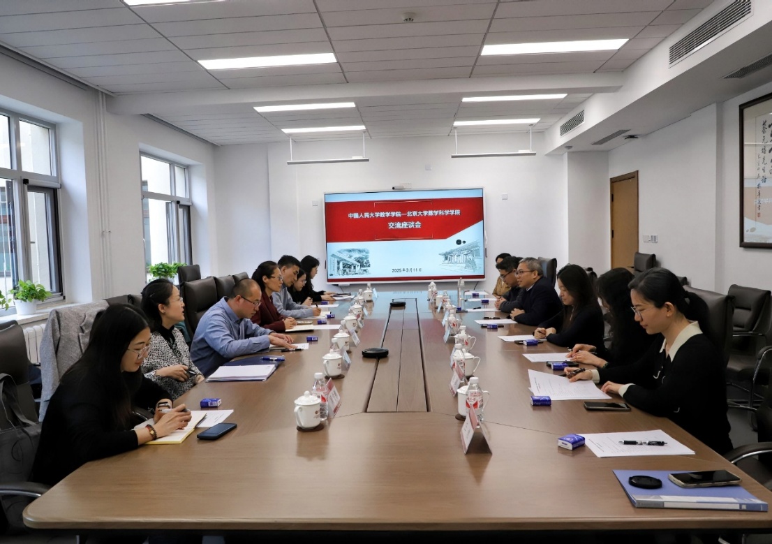 北京大学数学科学学院党委书记胡俊对pg电子试玩平台 一行的到来表示热烈欢迎,并介绍了北京大学数学科学学院在吸引和培养顶尖数学人才方面的既有成绩与创新举措。柯媛元对北京大学数学科学学院热情接待表示衷心感谢,并介绍了pg电子试玩平台 的基本情况。调研中,双方就高校数学学科的建设与人才引进策略展开探讨,了解双方在科研服务、本科生与研究生人才培养、党建工作等方面的特色举措,同时探索了两院未来合作的可能路径。北京大学数学科学学院党委副书记兼副院长章志飞、党委副书记董子静参加调研。