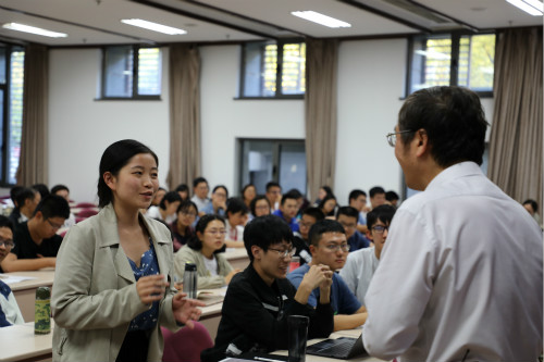 报告中,袁亚湘院士系统讲解了大数据问题的优化建模及主要的计算方法,介绍了压缩感知、矩阵完整化、距离几何问题、分类问题、梯度法、随机梯度法、交替方向法等当前国际上备受关注的优化问题和主要优化算法,解释了这些方法的本质和关键。袁院士幽默且通俗易懂的语言、贴近学生的实例,深入浅出的讲解,使报告引人入胜,现场气氛热烈,轻松活跃。在提问互动环节,同学们就自己在数学研究中遇到的难点问题,踊跃提问,袁院士耐心地予以一一解答和交流。参与讲座的师生一致反映,这是一场非常难得的高水平讲座,通过此次报告,收获的不仅仅是知识、方法,也进一步感受了数学学科魅力,领略到数学大家风采,数学家思考问题和研究问题、解决问题的方式,更让自己受到启发,对自己今后的学习大有帮助。