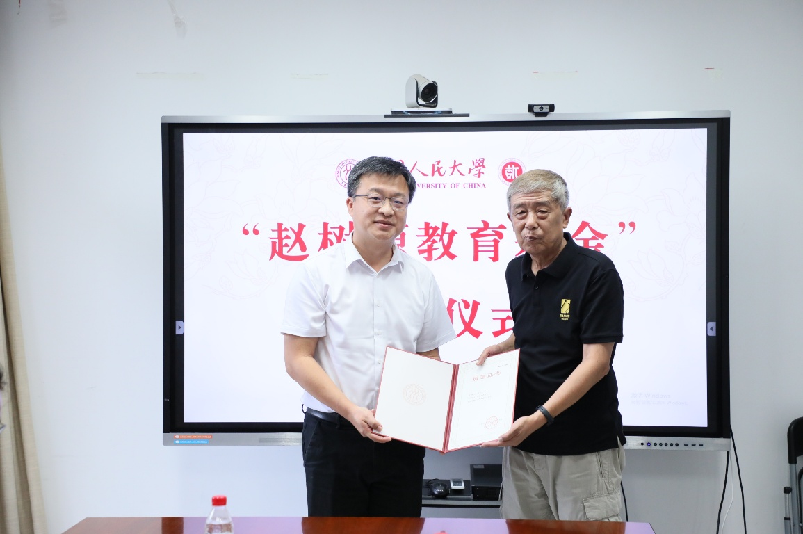 9月10日下午,中国人民大学“赵树嫄教育基金”捐赠仪式在pg试玩 216会议室举行。捐赠人萨奇先生以及中国人民大学党委副书记青格勒图、校友服务与资源拓展部部长兼教育基金会秘书长赵潇,pg试玩 师生代表出席捐赠仪式。pg试玩 党委书记柯媛元主持捐赠仪式。