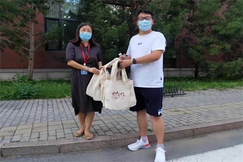 图一 魏二玲老师为学生送去防疫物资礼包