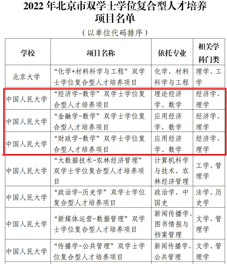 近日,北京市学位委员会发布了2022年度双学士学位复合型人才培养项目及联合学士学位项目名单,pg电子试玩平台 申报的三个项目“经济学-数学”、“金融学-数学”、“财政学-数学”入选2022年北京市双学士学位复合型人才培养项目。