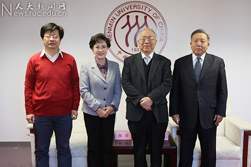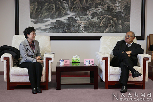 中国人民大学党委书记靳诺在讲座开始前会见了丘成桐教授,副校长吴晓球参加会见,理工学科建设处处长、科学技术协会副主席杜小勇,秘书长沈健和数学系主任林勇参加活动。靳诺书记指出,数学是科学之母,是学术科研勇攀高峰的一条必经之路。丘成桐教授不仅在世界的数学学术领域做出了杰出贡献,也一直非常关心支持中国的数学事业,做了很多重要工作,有力促进了中国数学学科建设、人才培养、科学研究的发展。