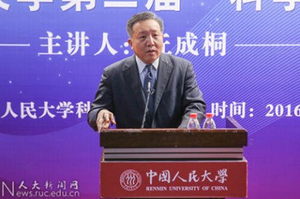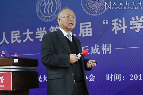 12月10日上午,中国人民大学科学技术协会第二届“科学大讲堂”在汇贤大厦举行,哈佛大学教授丘成桐作题为“科学与历史——中国基础科学发展”的讲座。