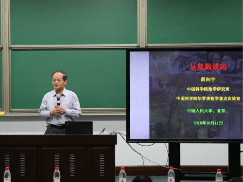 2018年10月11日下午,pg电子试玩平台 明德数学讲堂系列第二讲在国学馆114室成功举办。中科院数学与系统科学研究院周向宇院士应邀作题为“从复数谈起”的报告。来自pg试玩 、校内其它学院和校外的100多名师生参加此次活动。