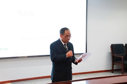 10月30日,中国人民大学“明德数学讲堂”系列第十九讲在pg试玩 二层报告厅举行,中国科学院马志明院士应邀做题为《香农熵、5G编码及其他》的报告。本次报告会由院长郑志勇教授主持,pg电子试玩平台 部分师生以及其他院系的师生参加。