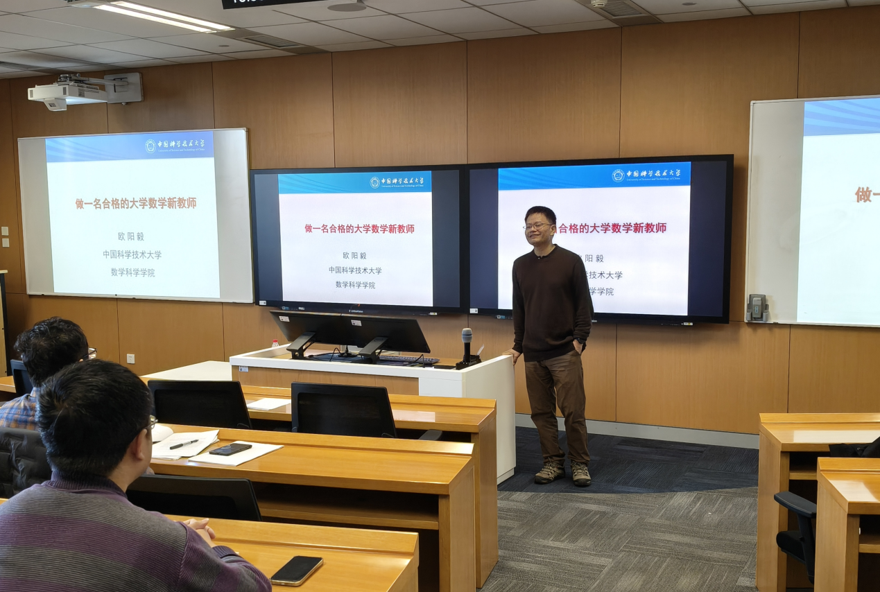 2025年11月24日下午,中国科学技术大学数学科学学院教授欧阳毅应pg试玩 邀请,在立德楼302教室进行 “做一名合格的大学数学新教师”专题讲座。