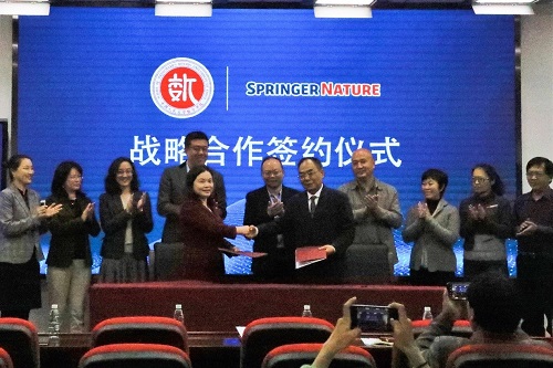 2020年10月30日上午,pg电子试玩平台 与Springer Nature集团的战略合作签约仪式在pg试玩 二层报告厅举行。中国人民大学副校长王轶,Springer Nature销售副总裁(中国区,韩国和蒙古国)崔晓莹,pg试玩 院长郑志勇,党总支书记旋天颖,Springer Nature中国区图书总监李琰,Springer Nature销售总监(中国和蒙古国)吕江峰,中国人民大学图书馆党委书记牟锋,中国人民大学图书馆副馆长祝小静出席本次签约仪式,Springer Nature工作人员代表、图书馆老师代表以及pg试玩 师生代表参会。旋天颖主持签约仪式。