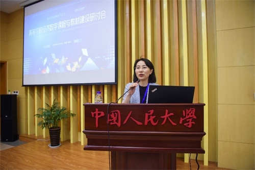 中国人民大学贾鲁军老师进行了“信息化驱动的课程建设和教学改革——以中国人民大学数学公共课为例”为主题的报告,介绍了“金课”建设的基本思路,根据学生们认知规律和教学实际,合理选用信息技术、数字资源和信息化教学设施,讲述了经济数学“金课”背景下的教材、教法的融合与创新。