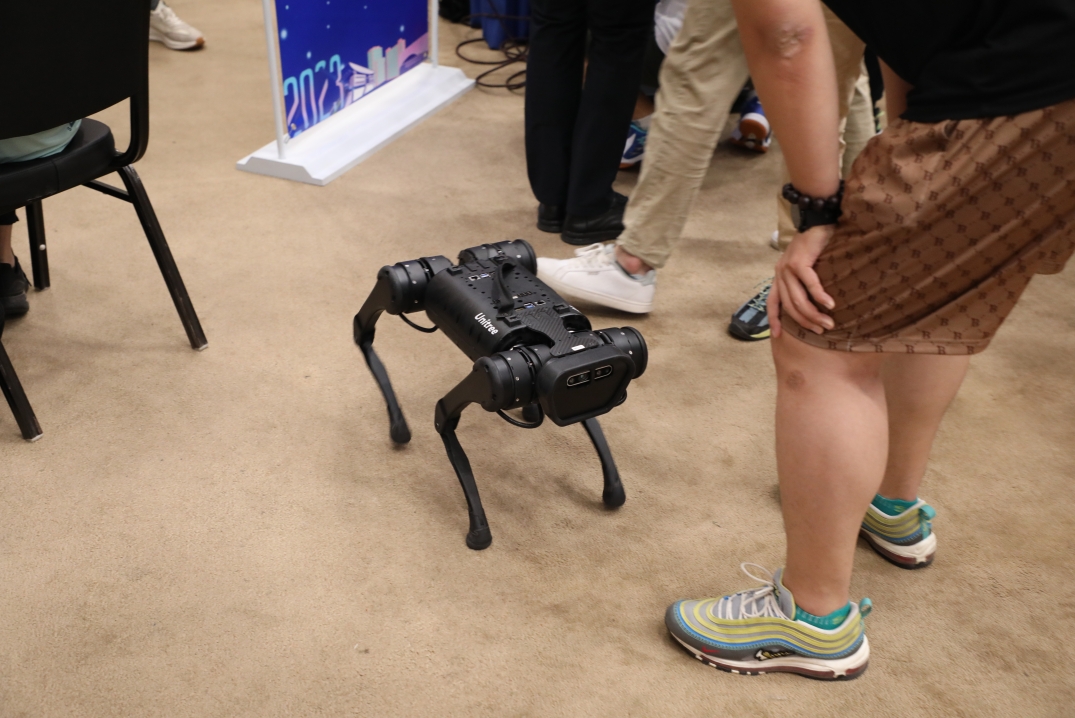(pg试玩 展台前机器狗表演)