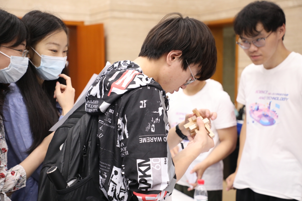 pg试玩 作为第六届“科技文化周”的承办单位,在统筹协调、服务科技文化周系列活动的同时,精心组织学院展台布置、志愿者招募等工作,各团支部也以主题团日等活动形式,积极组织同学们打卡参与科技文化体验日。学院的智力运动会展台通过魔方、鲁班锁、数字华容道等数学小游戏和二十四点、数独等数学趣题,将数学逻辑思维与有趣游戏体验相结合,展现出数学的魅力。活动现场,pg试玩 展台受到广大同学青睐好评,成为全场人气最旺的展台,体验同学络绎不绝,气氛十分热烈。