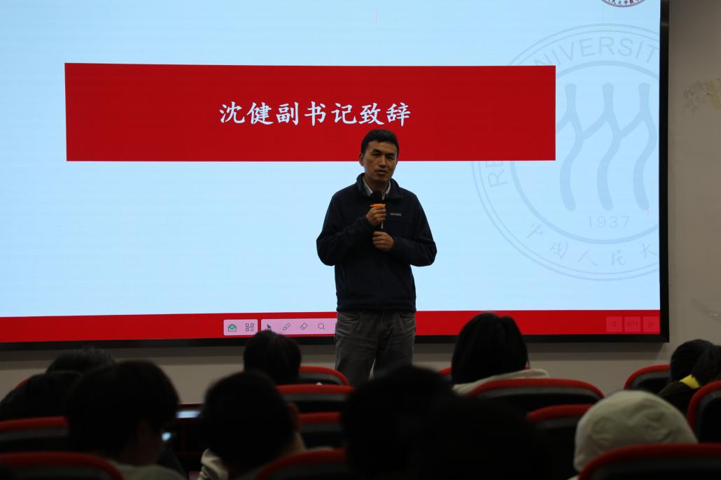大会在庄严的国歌声中隆重开始,党委副书记沈健老师致辞。他充分肯定了本次共青团pg试玩 第二次代表大会召开的意义,强调坚持“以党建带团建”的工作思路,勉励广大团员代表坚定听党话、跟党走的政治信念,提高身份意识,在思想、工作及生活中发挥先锋模范作用。沈健老师代表学院向大会筹备工作组成员以及全体参会代表表示衷心感谢,并预祝本次团员代表大会召开及新一届团委委员选举工作取得圆满成功。