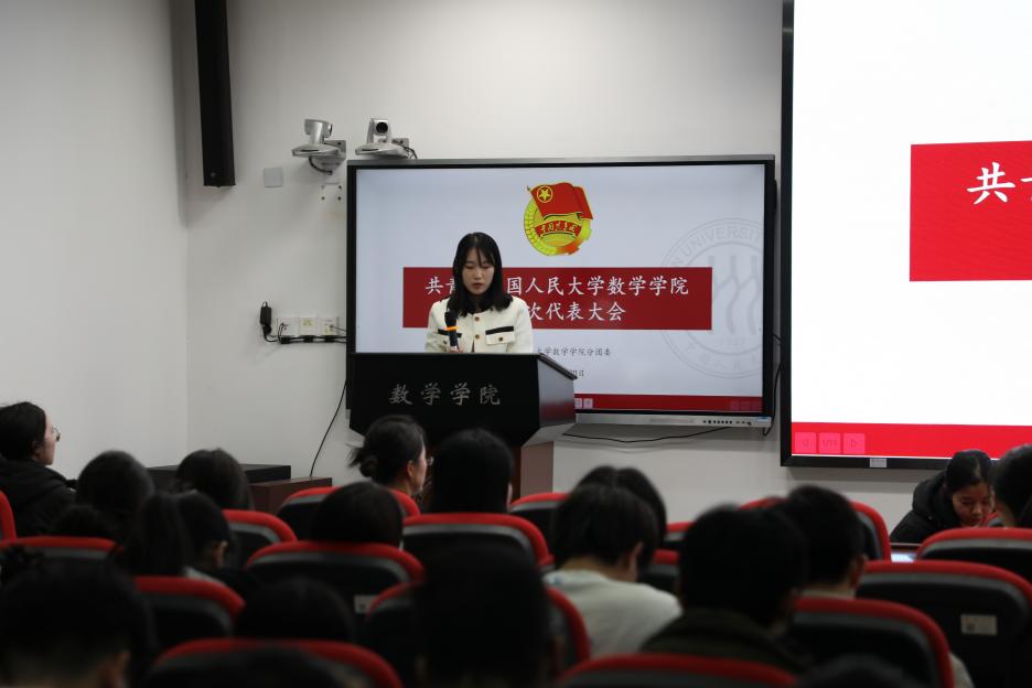 12月20日下午,共青团中国人民大学数学学院第二次团员代表大会在学院楼二层报告厅隆重召开,pg试玩 党委副书记沈健老师、团委书记李慧老师出席本次会议,学院第二届分团委委员候选人、团员代表参加本次会议。会议由数学学院团委副书记缪亭如老师主持。