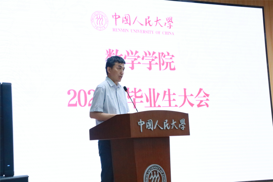 党委书记柯媛元首先致辞,她对118位圆满完成学业的毕业生表示热烈的祝贺,向毕业生们送上最真挚的祝福。她以“十年树木,百年树人”为喻,提出三点期望:一是深扎根系:以初心为锚,筑牢发展根基。希望同学们传承红色基因、赓续红色血脉,坚守初心,创造更有高度、更有境界、更有品位的精彩人生;二是强固枝干:以学识为干,延展生长维度。树干的拔节需要专业素养和丰富学识的滋养积累,希望同学们精进专业学识,拓展知识结构,在高质量发展进程中增强可持续发展的核心竞争力,适应新形势、新变革;三是繁茂枝叶:以热爱为光,充盈生命格局。希望同学们永葆对生活的热忱、对美好的向往,大家在以后的学习、工作中保持愉悦的心情、健康的体魄,让热爱成为生长的方向,努力成长为“时代之树”。最后,柯书记嘱咐同学们,即将带着人民大学pg试玩 的“根系”奔赴各地,希望同学们牢记习近平总书记的教诲,以“复兴栋梁、强国先锋”为己任,让青春在中国式现代化的沃土中拔节生长,以“树”的姿态诠释挺膺担当,为国家发展贡献人大数院人的力量!