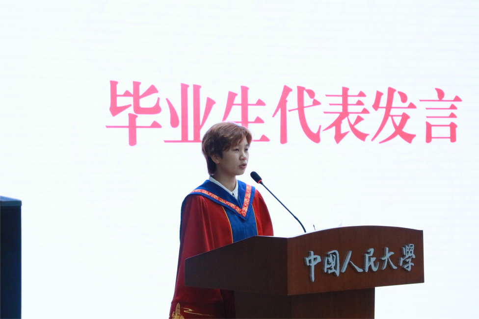 硕士毕业生代表黄梦笛在发言中回溯了自己在人民大学pg试玩 的三年时光,回忆了研究生期间经历的许多平凡但感动的难忘瞬间,感恩老师的“指导与点拨”、同学的“支持与互助”。她表示,母校赋予的“独立思考能力与严谨治学精神”是终身财富,鼓励同学们要将小我融入祖国的大我之中,以知识为剑、以责任为盾,在挑战中把握机遇,勇于担当、积极作为,在各自的领域中发光发热,不负时代,不负培养!