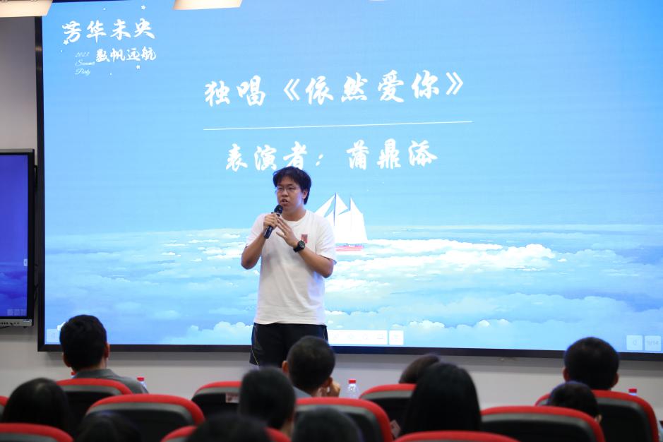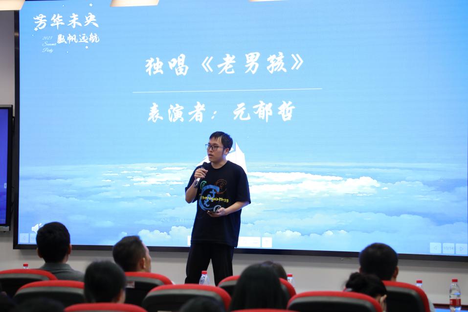 蒲鼎添献唱《依然爱你》,“到最后一定会依然爱你”直抒自己对数院、对人大的那份爱。