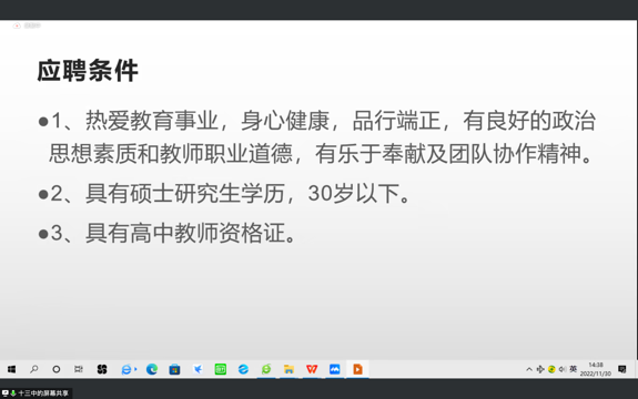 北京市第十三中学人力资源部负责人孙国贤老师介绍了学校的基本情况和应聘条件。北京市第十三中学是北京市示范性普通高中,创建于1929年,治学严谨、校风朴素。老师还向我们展示了一些学校风光,学校环境优美,设施先进,成果显著。最后,孙老师表达了对大家前来投递简历的欢迎。