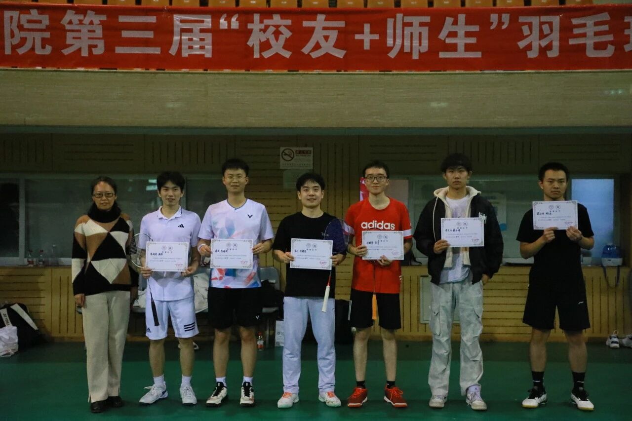 经过近四小时的激烈比拼,男单、女单、男双、女双、混双五个组别分别决出冠军、亚军和季军。赛场内外,选手们不仅切磋球技、交流战术心得,更畅聊求学往事、共话职场感悟、畅谈学院发展,在一次次挥拍与奔跑中凝聚了情感共鸣。赛后,pg试玩 党委书记柯媛元老师为获奖队伍颁奖,与“校友+师生”队伍亲切合影,为这场充满激情与温情的联谊赛画上圆满句号。