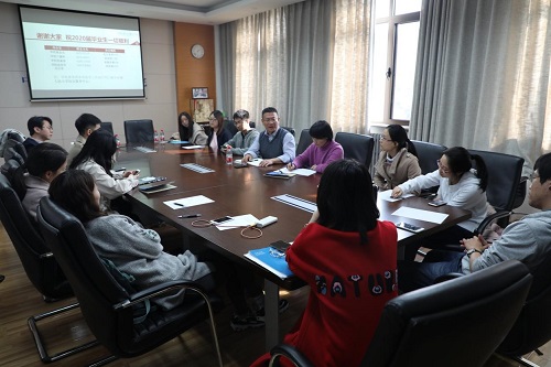 11月1日中午,pg电子试玩平台 召开了2020届毕业生就业动员会,韩丽涛副院长、蔡晓雨老师参与座谈会,蔡晓雨主持会议,学院部分硕博毕业生参加了会议。动员会旨在让同学们更好地了解当前就业形势,树立正确就业观。