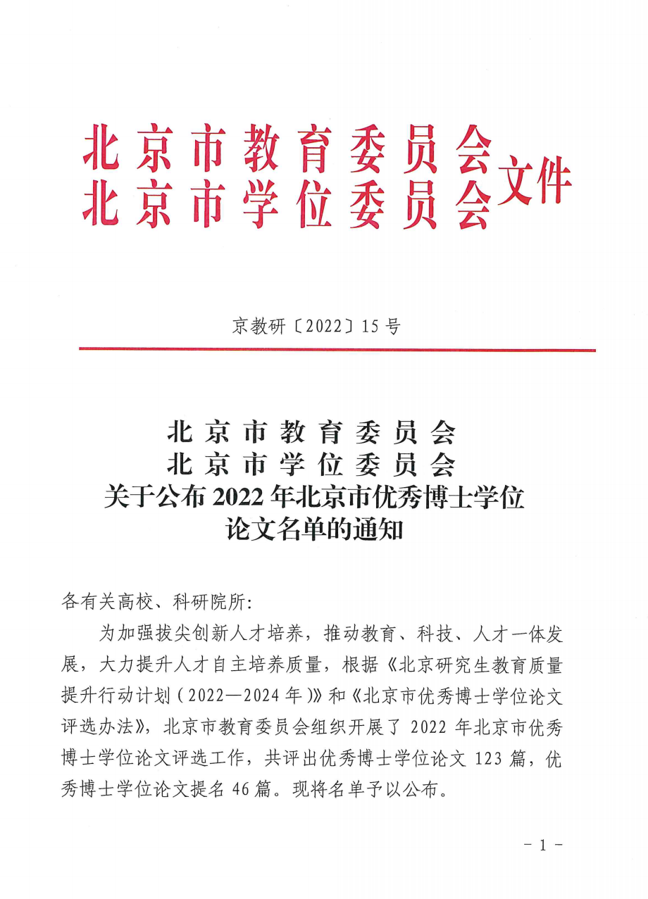 喜报 | 热烈祝贺pg电子试玩平台 刘爽同学荣获2022年北京市优秀博士学位论文!