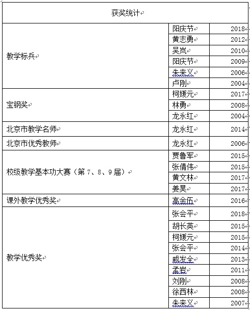 pg试玩 的老师在教学方面高度重视教学工作,把主要精力投入到教学工作中上,兢兢业业、勤勤恳恳。多年来分别有3人获得“宝钢优秀教师奖”,1人获得北京市优秀教师称号,1人获得北京市教学名师奖,1人获得吴玉章优秀教学奖,6人次获得中国人民大学“教学十大标兵”的荣誉称号,获得了广大学生的好评。