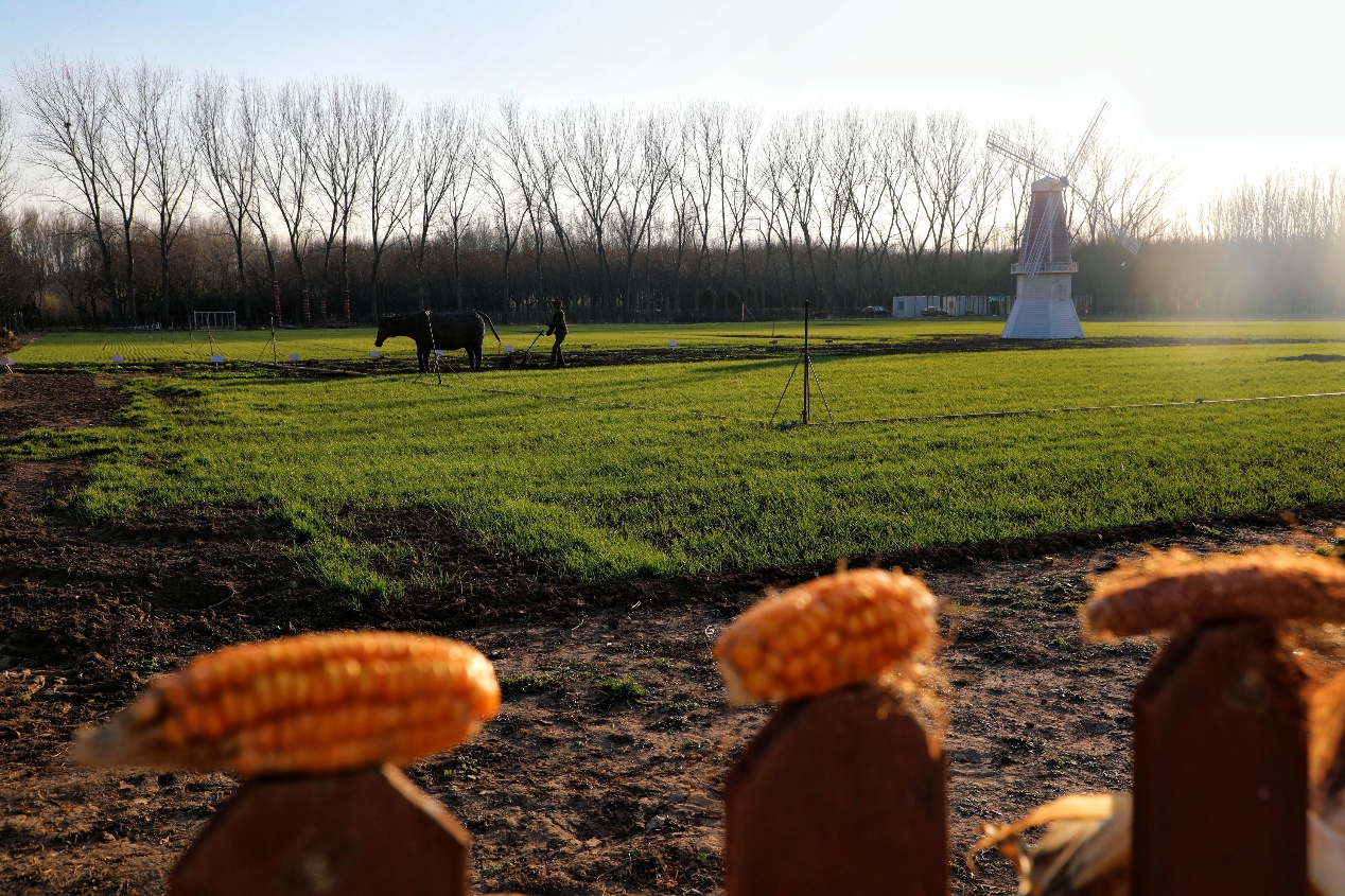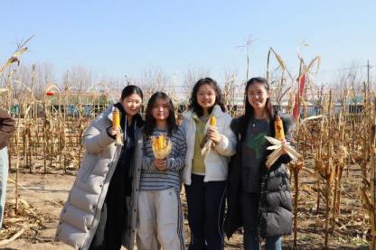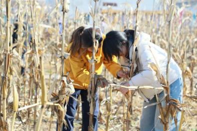 连片玉米垄勾住了目光,秸秆早已褪成深褐,众人钻进垄间,扒开苞叶寻找漏收的余穗。指尖蹭着糙硬的玉米皮,偶尔摸出裹着浅黄籽粒的棒槌,便将玉米摘下,捆扎结实,将玉米串稳稳挂在栅栏上,阳光洒在一串串金黄的玉米上,映着暖融融的光。午饭时分,小院成了热闹营地,秋千晃着午后的惬意,蹦床弹起连片欢呼,饭菜香混着田间烟火气,把些许疲惫都浸得柔软。